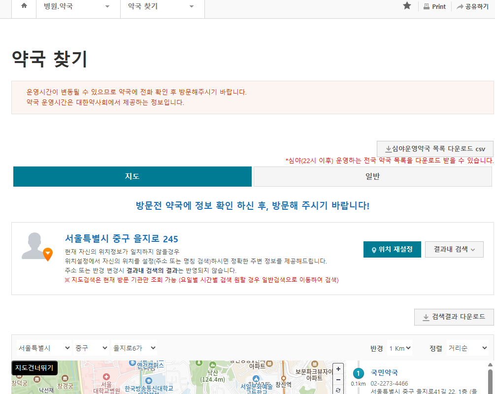 - ‘심야 약국’, ‘야간 약국’ 검색